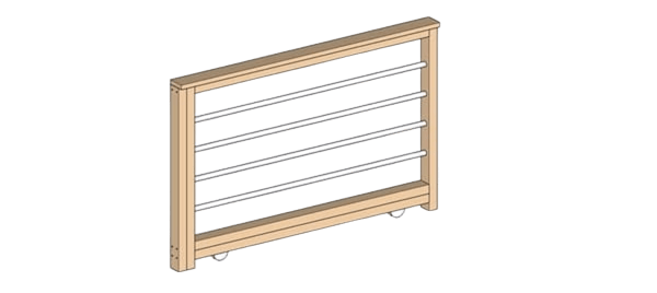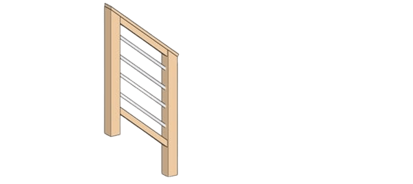 Rambarde avec barreaux en inox + lames de bois + méthacrylate