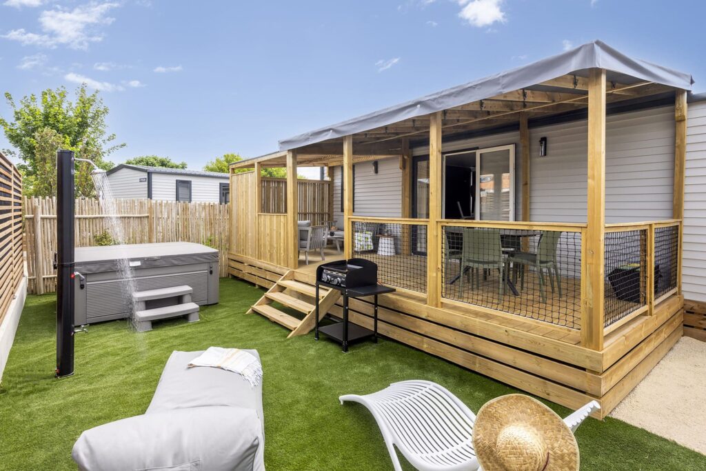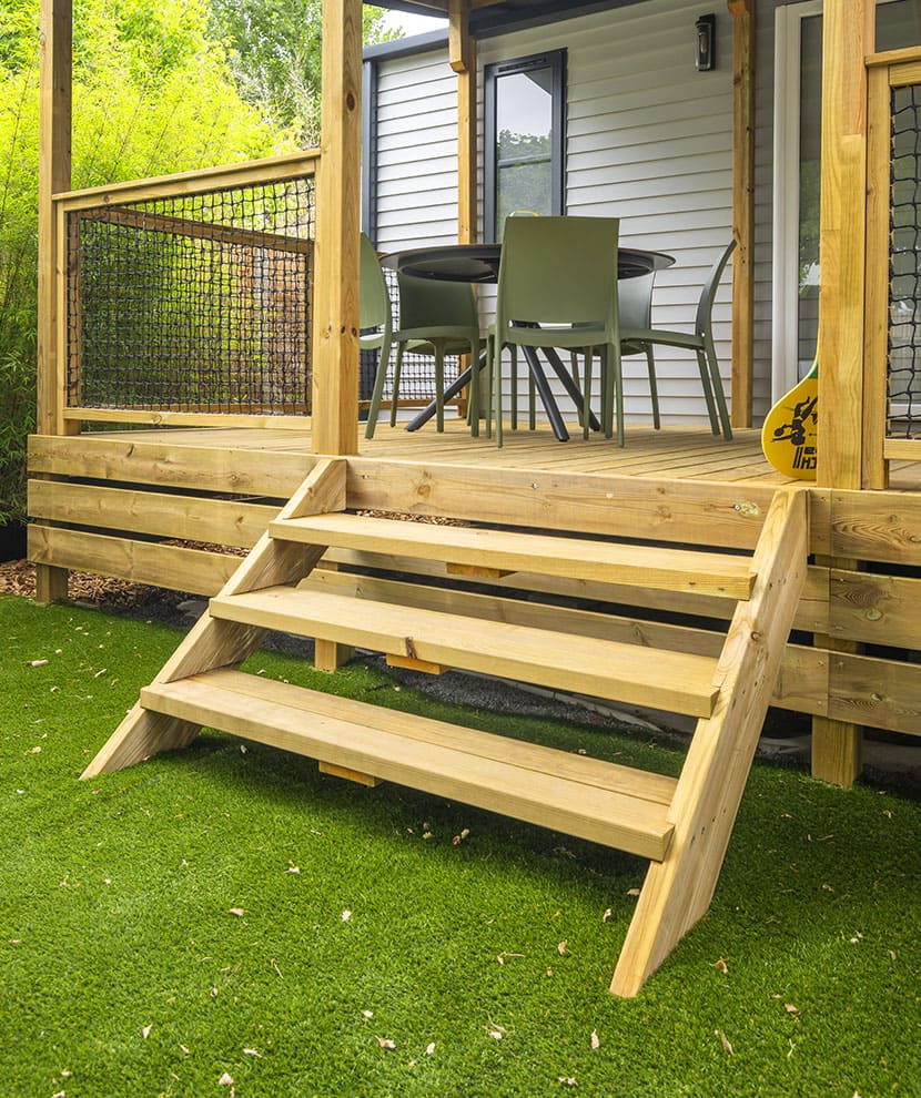 Pensée pour un usage intensif en toutes saisons, la terrasse bois couverte pour mobil-home allie robustesse, confort et esthétique. Elle offre une protection permanente contre la pluie et le soleil, tout en apportant une véritable extension extérieure, protégée, agréable à vivre, et parfaitement intégrée à son environnement. C’est un choix privilégié pour les projets de longue durée ou les installations hautement valorisées.